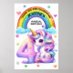 Póster Cuarto Fiesta de cumpleaños con arcoiris y unicorn