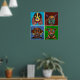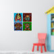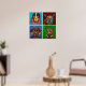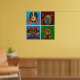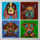 Cuatro rostros únicos y feos de perro con patrones abstractos audaces y coloridos: Bulldog francés, Springer Spaniel, Boxer, inglés Pointer. Popular con los amantes del perro y de las mascotas y los amantes del rescate de los perros.