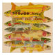 Diseño y acuarelas originales de varias especies de truchas por el artista acuático Thom Glace