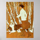 Clarence Coles Phillips era un artista e ilustrador estadounidense conocido por sus elegantes imágenes de las mujeres y su uso del espacio negativo en las pinturas que creó para publicidad y las portadas de revistas populares. Su uso creativo de esta técnica de pintura negativa se popularizó con sus "Chicas Fadeaway". En estas pinturas, el contorno de la mujer se revela por los antecedentes contra los que está colocada. Muchas de las pinturas presentan una pintura positiva de la cabeza, hombros, brazos y pies, con pintura negativa de su ropa, creando un diseño con una figura cuya ropa se correspondía, y desaparecieron al fondo. Trabajando desde la vida en lugar de las fotografías, Phillips frecuentemente usó a su esposa como modelo para sus populares portadas y muchos ilustraciones publicitarios para productos de consumo de los años 20. Este ilustracion de marrones y cremas representa a una encantadora mujer caminando por su collie a través de un bosque de invierno.