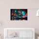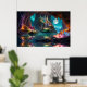 Cristales brillantes y árboles en una cueva acuosa bajo una luna llena Arte de IA creado por minx267