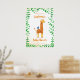 Este poster con ducha para bebés cuenta con una preciosa jirafa acuática, un diseño de pájaros y vegetación. Personalízalo con un nombre y una fecha. Este poster forma parte de una colección que incluye una amplia gama de productos de aseo para bebés a juego.