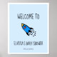 Póster Cuidado cohete azul bebé niño Bebé ducha bienvenid