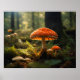Póster Cultivando champiñones en el bosque