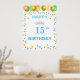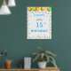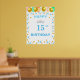 Hermosa tiara/corona, globos multicolores y confeti dorado y turquesa Póster de cumpleaños. El texto se puede personalizar para otras edades. La Corona también se puede personalizar.