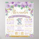 ¡Un toque perfecto para la fiesta del primer cumpleaños de tu pequeña! Este hermoso Póster de Estadísticas de Cumpleaños con Elefante Floral Morado es perfecto para enmarcar y colocar en una mesa de postres/torta y usar como decoración para el cuarto del bebé después. ¡Genial como accesorio de foto para fotos de cumpleaños muy especiales y memorables! También hace un regalo maravilloso y único.