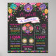 Póster de cumpleaños con temática de fiesta / estadísticas de nacimiento en pizarra con flores pintadas a mano coloridas y banderines y confeti vibrantes. Los campos de texto son totalmente editables y puedes cambiar las categorías si es necesario. Haz clic en el botón "Personalizar más" si deseas cambiar el estilo de fuente, colores / reorganizar la colocación del texto.