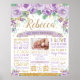 ¡Un toque perfecto para la fiesta del primer cumpleaños de tu pequeña! Este hermoso Póster de Estadísticas de Nacimiento y Logros del Primer Cumpleaños con flores púrpuras es perfecto para enmarcar y colocar en una mesa de postres/torta y usar como decoración para el cuarto del bebé después. ¡Genial como accesorio de foto para fotos de cumpleaños muy especiales y memorables! También hace un regalo maravilloso y único.