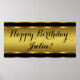 Elegante poster de banner de la fiesta de cumpleaños negro y dorado. Este hermoso banner negro y dorado de cumpleaños se personaliza fácilmente para tu evento simplemente agregando tu texto en el estilo de letra, tamaño y color de tu elección. También puede cambiar el color de fondo a la sombra que necesite.