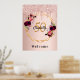 Póster Cumpleaños rosa oro florals purpurina geo bienveni