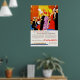 Vintage ocean liner advertisement for Cunard's transatlantic services of the Queens Mary and Elizabeth showing a festive party on board.