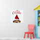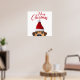 Ilustracion de animales de la Feliz Navidad: Perro curioso con sombrero de Santa. Saludo estacional escrito en letras de tipografía moderna.