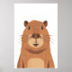Un ilustracion encantador de un capibara que da directamente a la calle con una expresión tranquila y suave. La imagen capta las características únicas del capibara, como su cara redonda, sus ojos expresivos y sus bigotes distintivos. El estilo minimalista y los tonos tierra le dan un aspecto encantador, lo que lo convierte en un atractivo visual para los amantes de los animales.