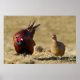 Un faisán masculino está tratando de llamar la atención de la mujer. Caminando a su lado mostrando sus colores. ¿La hembra va a ceder a sus encantos?