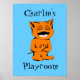 This is Mocha, one of the laughing cat cartoon characters in the "Fifty Happy Cats" print. All 50 cats can be mixed and matched to decorate a child's room. This version is part of the "Toy Matching" series and has been digitally altered to complement the colors of Fisher Price, Little Tikes, Playskool and Megabloks toys and Garanimals and Carter's clothing.