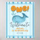 Póster Cute Baby Blue Whale 1st Birthday Welcome Sign