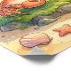 Featuring a cute baby crab holding a tiny seahorse on a sunny beach, this artwork reflects the nurturing, protective, and affectionate nature of Cancer.