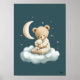 Póster Cute Bear on Cloud Nursery Bedtime Wall Art