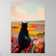 Póster Cute Black Cat Enjoying Nature with Bicycle