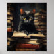 Póster Cute Black Cat Reading a Book Poster