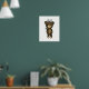 A poster with a simple illustration of a cartoon brown bear holding a yellow daisy. Hello written above his head.