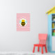 Este diseño presenta una divertida abeja gorda con fondo de lunares rosas y rayas.