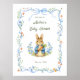 Celebrate the upcoming arrival of your little one with this classic storybook-inspired baby shower welcome poster. Featuring a charming, watercolor style bunny holding a carrot, this design is framed by hand painted delicate blue ribbons, whimsical bows, and soft garden florals.