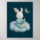 Póster Cute Bunny Reading on Cloud Nursery Bedtime