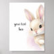 Add a soft and charming touch to your nursery with this adorable watercolor bunny poster. Featuring a cute baby bunny peeking from the side, this design is created in gentle pastel tones and a dreamy nursery art style that brings warmth and calm to any baby room or kids’ space. The clean composition and large open area make it perfect for personalized nursery décor or simple, minimalist wall art.