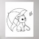 Póster Cute Cat Umbrella Leaf Coloring Page