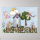 Arte folclórico lindo de una casita, valla de piquete, flores y libélulas creadas por Trina Clark digiscrapkits.com. Diseño de diseño por visas