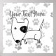 Pequeño y bonito bull terrier inglés, blanco con parche de ojos negros, sobre un fondo de huellas de pata en escala de grises...¡clásico! Personalizar a tu gusto (incluso borra todo el texto).