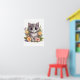 Póster Cute Gray Kitty con flores Kawaii Chibi