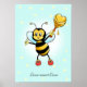 Póster Cute Happy Bumble Bee & Honeycomb con Hearts Post