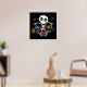 Este diseño presenta un lindo esqueleto con dos murciélagos en el fondo. El texto "¡Feliz Halloween!" está escrito en popular y colorido texto moderno. #halloween #fiesta #festividades #skeleton #moda #style