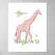 Una imagen realmente encantadora de una jirafa caprichosa con flores bonitas, un gran póster para una guardería de bebé o habitación de niños y muy fácil de personalizar con un nombre, lo que la convierte en una excelente idea de regalo.
