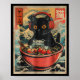 Póster Cute Kawaii Gamer Cat Funny Ramen Retro Japanese C