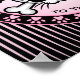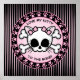 Calavera de gatito y huesos cruzados montados sobre un fondo rosado con huellas de pata.