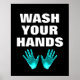 El Rótulo Cute Wash Your Hands está diseñado con las manos verde azuladas de neón turquesa y atrevidas. La tipografía es "lávate las manos" con grandes letras en negrita. Esto es perfecto para escuelas y empresas en cuartos de descanso/baños para recordar a los clientes y empleados la higiene manual. Disponible en diferentes tamaños y puede personalizar el fondo negro a cualquier color.