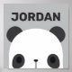 Este diseño presenta un pequeño oso panda con nombre personalizado en estilo de letra sans serif moderna gris sobre fondo gris claro.