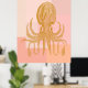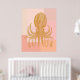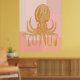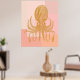 A fun, playful vintage octopus image on a pink and gold color block background.