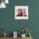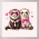 Un poster con un ilustracion lindo. Un par de nutrias con ropa rosada. Vestidos de camisetas a rayas, uno con corbata y el otro con un arco. Rodeado de corazones de amor.