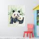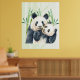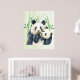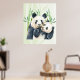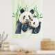 Un poster con un lindo ilustracion acuarela con una madre blanca y negra y un oso panda bebé abrazándose. Mamá está sosteniendo su cachorro entre algunos tallos de bambú verde.