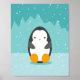 Póster Cute Penguin on ice Blue Winter Cartoon