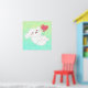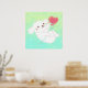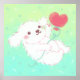 A cute illustration of a white puppy holding a heart shaped balloon for Valentine's Day and for dog lovers
