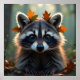 Un adorable mapache sentado en un bosque en el otoño cubierto de otoño deja arte de pared de animales para los amantes de los mapaches!