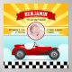 Póster Cute Retro Red Race Car Baby Photo Birth Stats