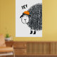 Las ovejas negras dibujadas a mano con una tonta lana garabato y una gorra naranja forman una cara amistosa en cualquier pared de la habitación de un niño o de un vivero.