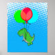 Póster Cute T-Rex Volando Con Globos En Cielo Azul