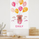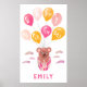 Póster Cute Teddy Bear Globos Chica Fiesta de cumpleaños